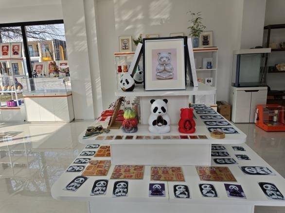 在“祈福熊猫”文创店,可爱的熊猫形象与银花丝、竹编、漆器等非遗元素巧妙相融。这个诞生于2019年初青羊区小通巷的IP,有着深厚的文化渊源。据店铺负责人万传奇介绍,小通巷离实业街的千年古刹福感寺遗址仅一墙之隔,两晋始建、隋唐鼎盛的福感寺,曾是官民祈福求祥之地,而祈福的习俗也延续至今。2019年元旦熊猫文创节上,“祈福熊猫”一经亮相便广受好评,此后不断迭代升级,开启与非遗的跨界联动。“我们用3D打印技术复刻非遗纹样,让传统技艺以更鲜活的方式走近大众。”万传奇表示,入驻非遗新空间,正是希望借助这个窗口,让更多人认识并爱上“祈福熊猫”,爱上非遗。